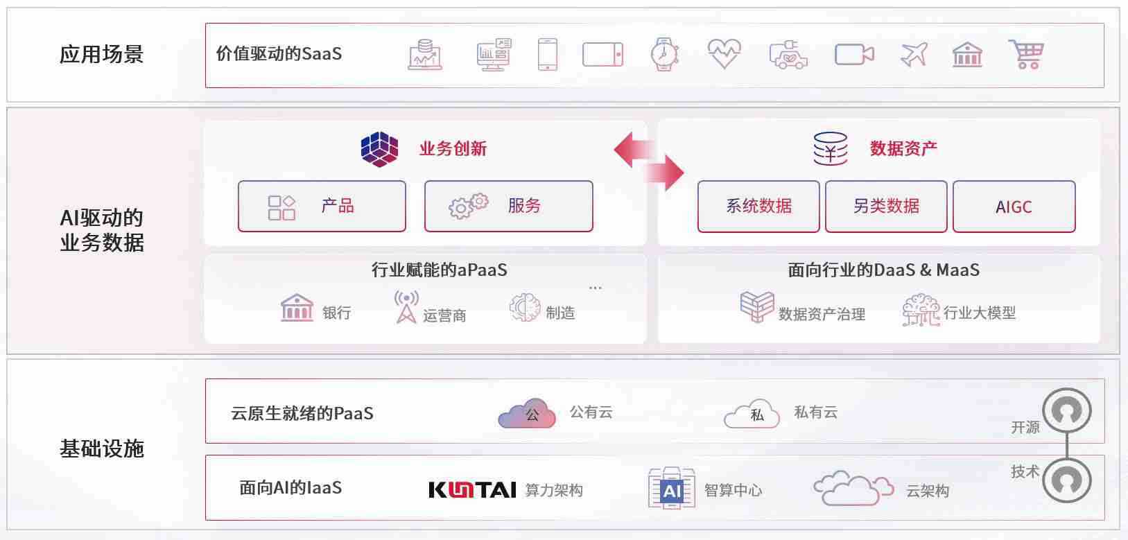 数字时代,,,,围绕企业数字化转型的关键要素,,,,GGPOKER数码开创性的提出数云融合战略和技术体系框架,,着力在云原生、、、数字原生、、AI原生和信创产业上架构产品和服务能力,,为处在不同数字化转型阶段的快消零售、、、汽车、、、金融、、、医疗、、、、政企、、、、教育、、、、运营商等行业客户提供泛在的敏捷IT能力和融合的数据驱动能力,,,,构建跨界融合创新的数字业务场景和新业务模式,,,,助力企业级客户建立面向未来的核心能力和竞争优势,,,,全面推动社会的数字化、、、智能化转型升级。。。